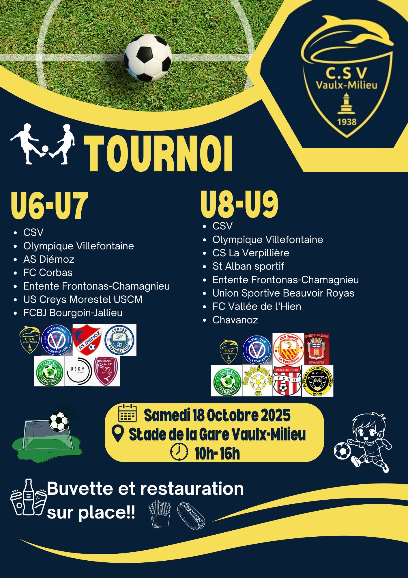 📅 Ce samedi 18 octobre 2025, une partie de nos enfants participeront à un Tournoi organisé par le CS Vaulx Milieu.